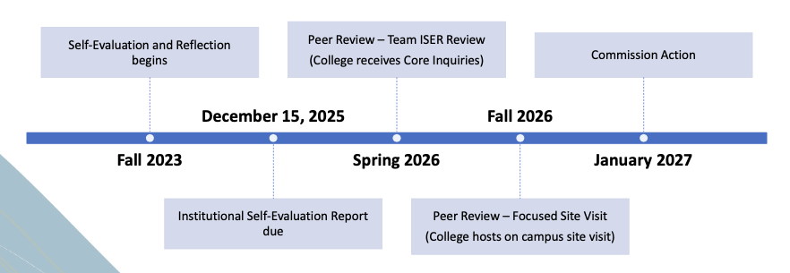 CFOT is currently preparing for submission of its 2026 ISER. Below is the timeline for CFOT's next comprehensive evaluation.