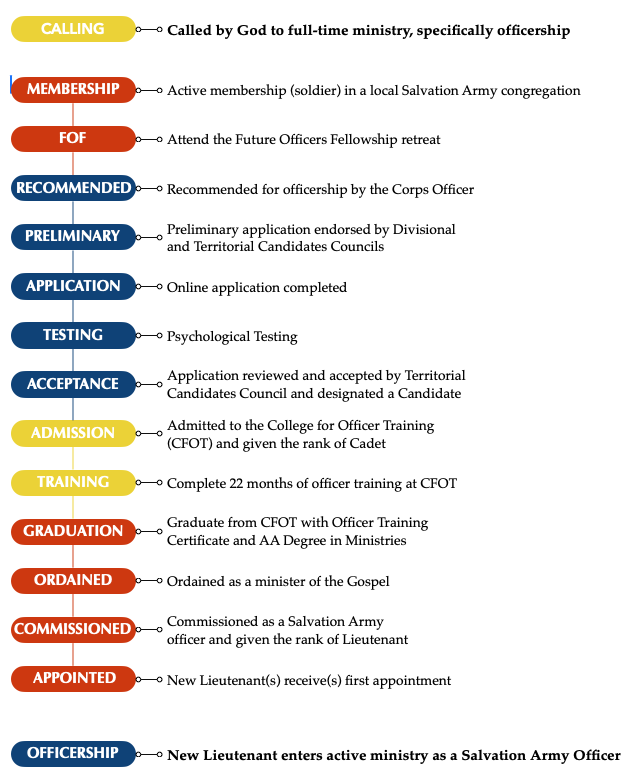 Below is the typical path to officership in the USA Western Territory: