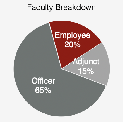 The teaching responsibilities for the AA Degree Program are carried out by the qualified officers (13), employees (4), and additional adjunct faculty (3).